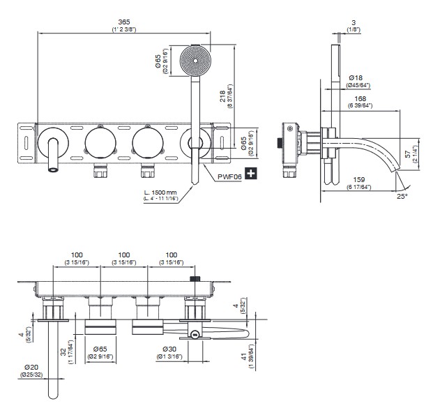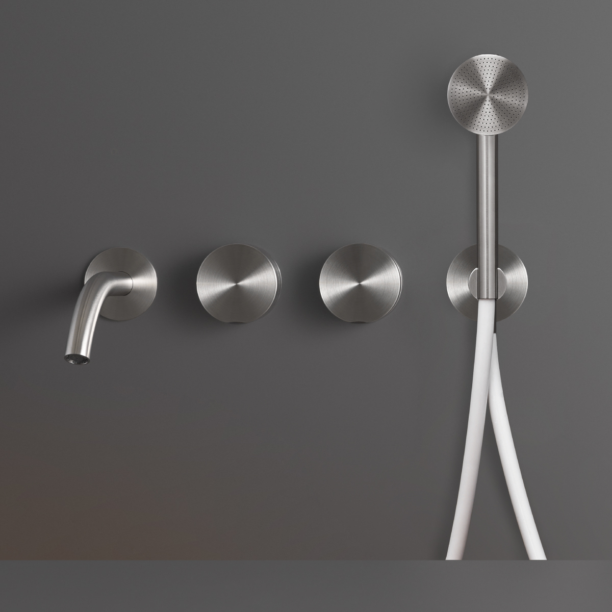 CEA Giotto Plus Bateria wannowa/prysznicowa ścienna z wylewką, słuchawką i wężem element zewnętrzny Satin Stainless Steel GIO94WS