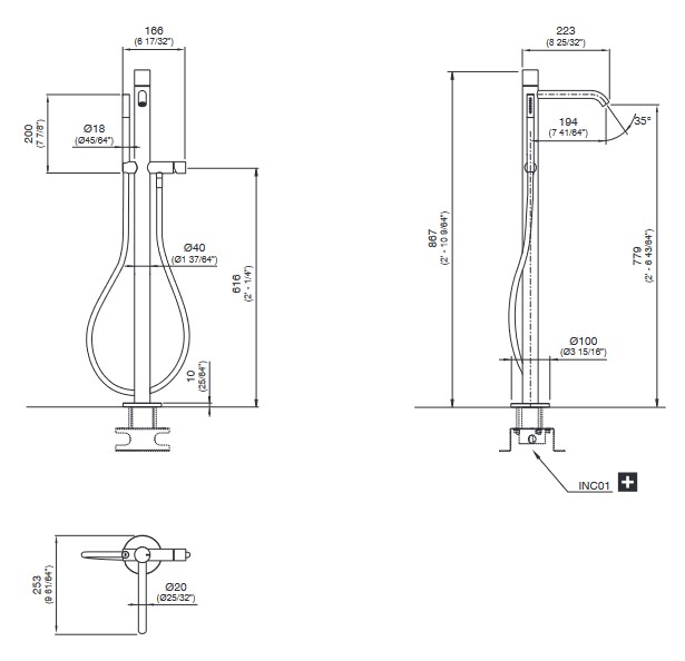 CEA Giotto Plus Bateria wannowa wolnostojąca ze słuchawką i wężem element zewnętrzny Satin Stainless Steel GIO97WS