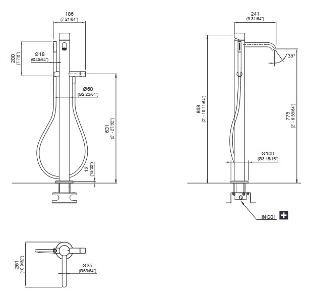 CEA Giotto Plus Bateria wannowa wolnostojąca ze słuchawką i wężem element zewnętrzny Satin Stainless Steel GIO98BKS
