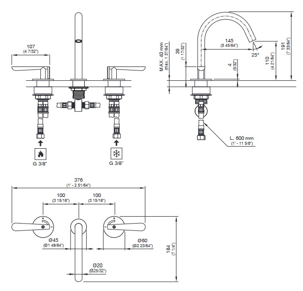 CEA Lutezia Bateria umywalkowa 3-otworowa z obrotową wylewką H19 cm Satin Stainless Steel LTZ10S