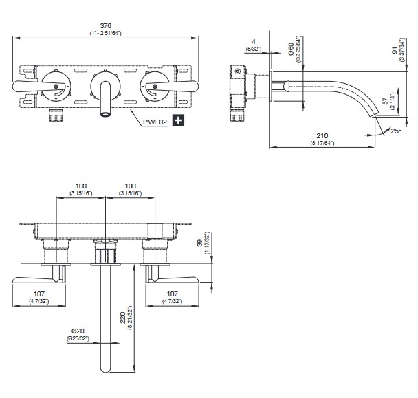 CEA Lutezia Bateria umywalkowa ścienna z wylewką 22 cm element zewnętrzny Bronze Satin LTZ03ZS