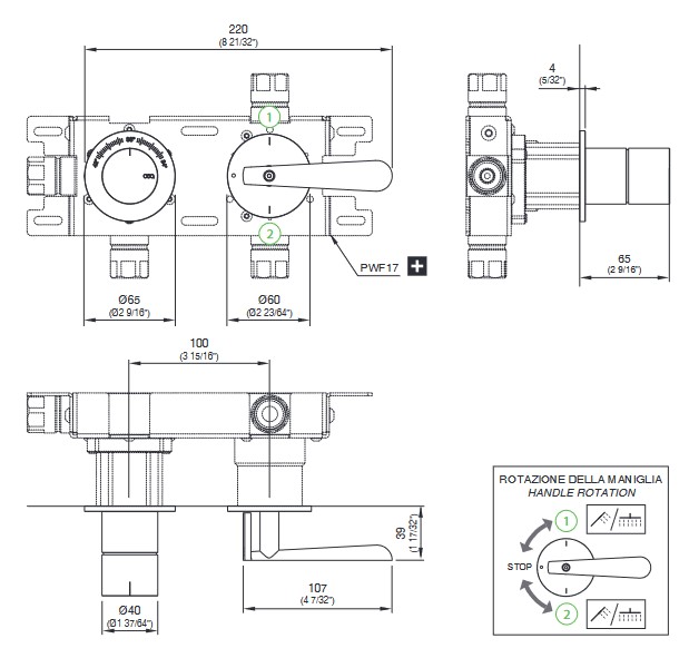 CEA Lutezia Bateria prysznicowa ścienna termostatyczna z przełącznikiem 2-drożnym element zewnętrzny Satin Stainless Steel LTZ52S