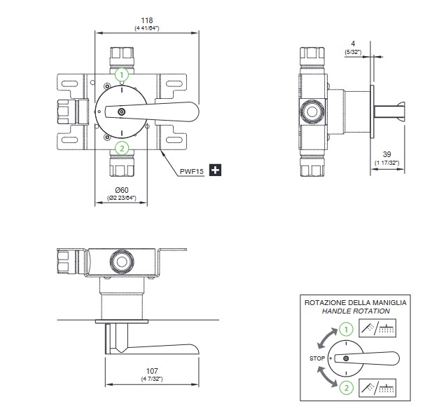 CEA Lutezia Przełącznik ścienny 2-drożny element zewnętrzny Satin Stainless Steel DEV20S