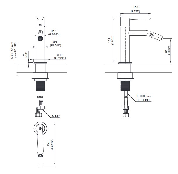CEA Lutezia Plus Bateria bidetowa jednootworowa z wylewką H16 cm Satin Stainless Steel LTZ15S