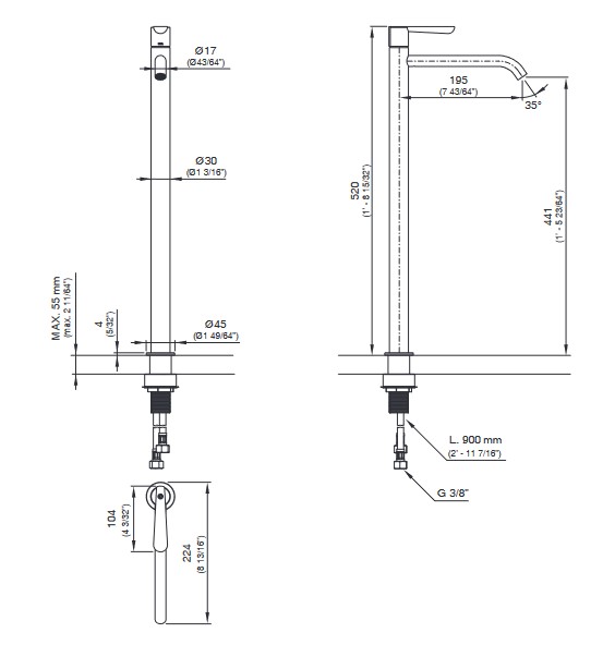 CEA Lutezia Plus Bateria umywalkowa jednootworowa do umywalki nablatowej H52 cm Satin Stainless Steel LTZ19S