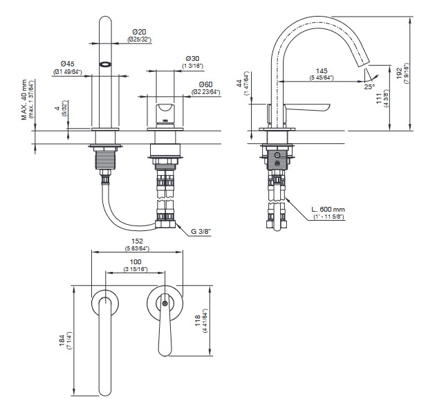 CEA Lutezia Plus Bateria umywalkowa 2-otworowa z obrotową wylewką H19 cm Satin Stainless Steel LTZ26S