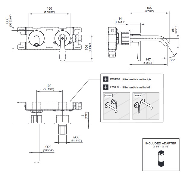Element podtynkowy PWF03, wylewka z lewej