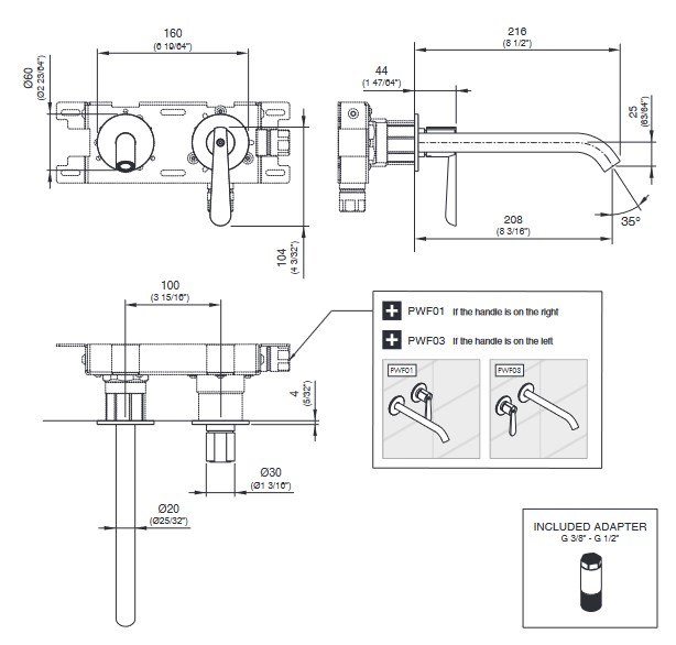 CEA Lutezia Plus Bateria umywalkowa ścienna z wylewką 21,5 cm element zewnętrzny Satin Stainless Steel LTZ24S