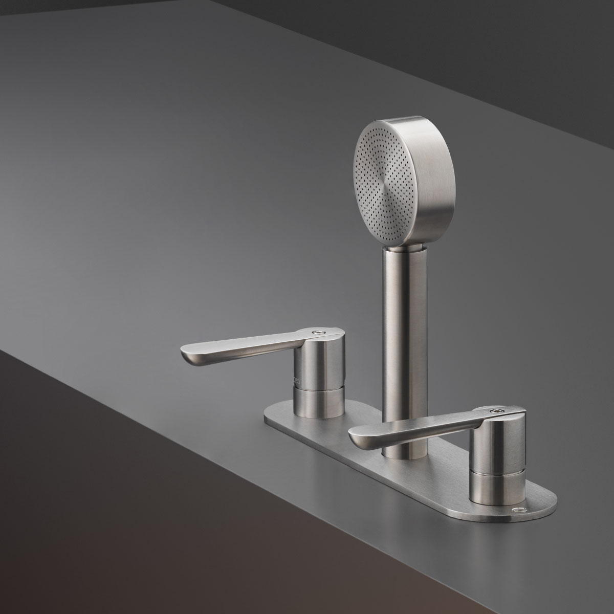 CEA Lutezia Plus Bateria wannowa 3-otworowa na brzeg wanny ze słuchawką prysznicową element zewnętrzny Satin Stainless Steel LTZ45S