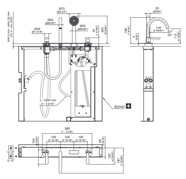 CEA Lutezia Plus Bateria wannowa 4-otworowa na brzeg wanny z wylewką i słuchawką prysznicową element zewnętrzny Satin Stainless Steel LTZ46S