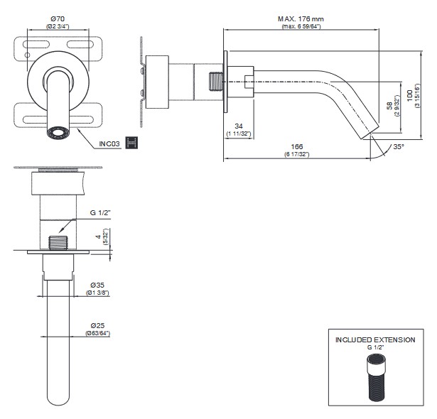 CEA Neutra Wylewka ścienna 17,5 cm element zewnętrzny Satin Stainless Steel NEU20S