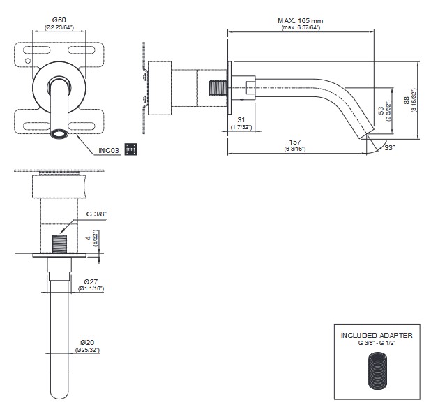 CEA Neutra Wylewka ścienna 16,5 cm element zewnętrzny Satin Stainless Steel NEU66S
