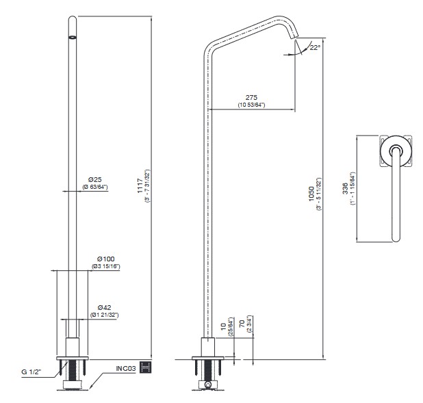 CEA Neutra Bateria umywalkowa wolnostojąca element zewnętrzny Satin Stainless Steel NEU23S