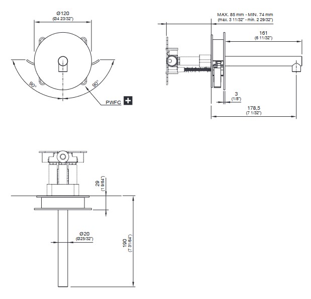 CEA Circle Bateria umywalkowa ścienna z wylewką 19 cm element zewnętrzny Satin Stainless Steel CIR01S