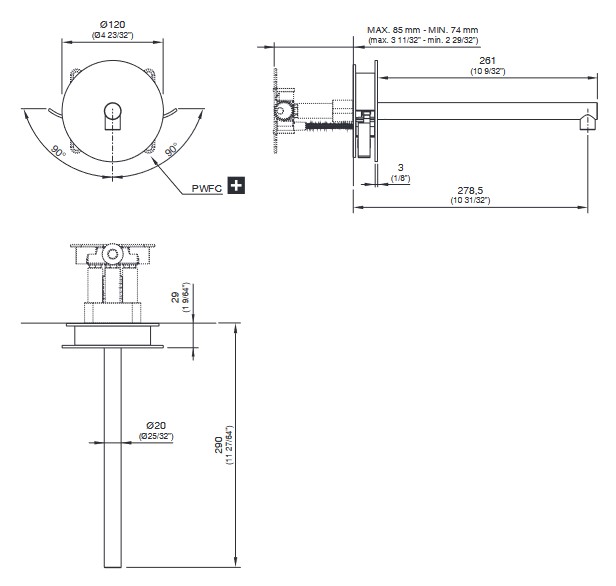 CEA Circle Bateria umywalkowa ścienna z wylewką 29 cm element zewnętrzny Satin Stainless Steel CIR02S