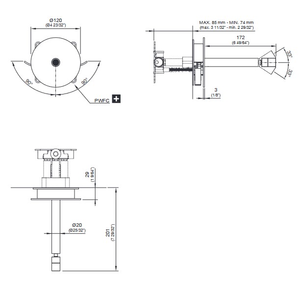 CEA Circle Bateria bidetowa ścienna z regulowaną wylewką 20 cm element zewnętrzny Satin Stainless Steel CIR03S