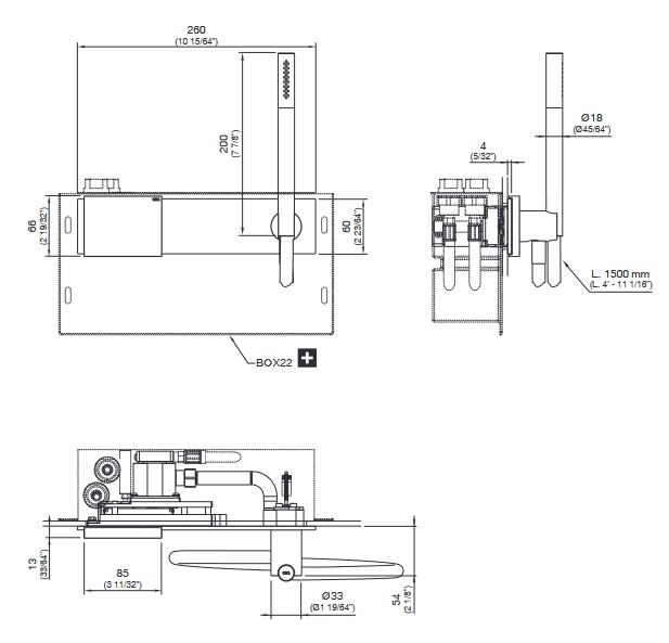 CEA Regolo Bateria wannowa/prysznicowa ścienna z słuchawką i wężem element zewnętrzny Satin Stainless Steel REG10WS