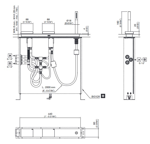 CEA Regolo Bateria wannowa 3-otworowa na brzeg wanny ze słuchawką prysznicową element zewnętrzny Satin Stainless Steel REG13S