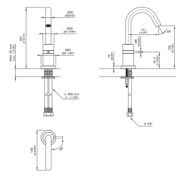 CEA Gradi Bateria umywalkowa jednootworowa z obrotową wylewką H22,5 cm Copper Satin GRA04PS