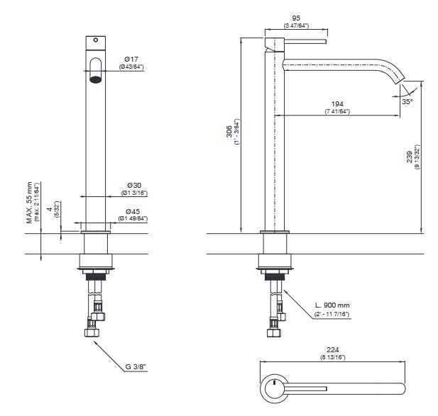Wysokość wylewki: 23,9 cm