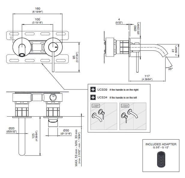 CEA Gastone Bateria umywalkowa ścienna z wylewką 12,5 cm element zewnętrzny Satin Stainless Steel GAS04WS