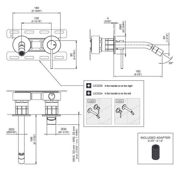 CEA Gastone Bateria bidetowa ścienna z regulowaną wylewką 16,5 cm element zewnętrzny Satin Stainless Steel GAS07WS