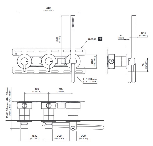 CEA Gastone Bateria wannowa/prysznicowa ścienna z słuchawką i wężem element zewnętrzny Satin Stainless Steel GAS08WS