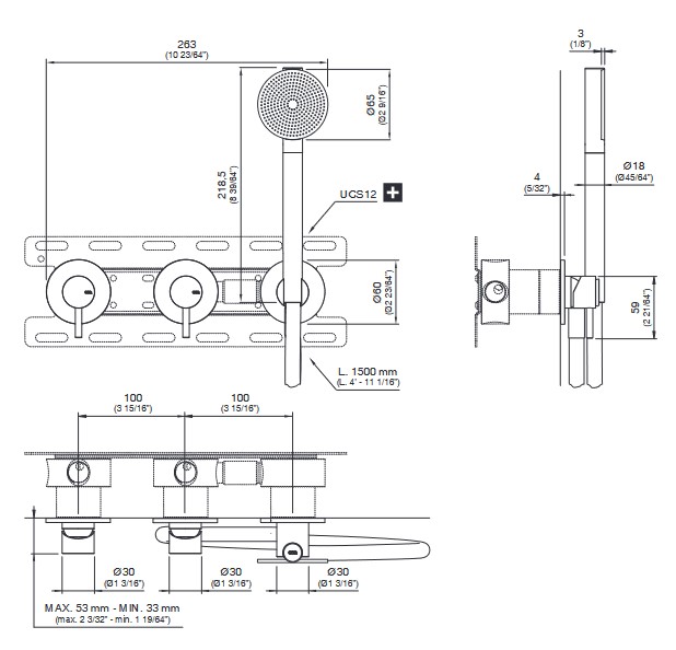 CEA Gastone Bateria wannowa/prysznicowa ścienna z słuchawką i wężem element zewnętrzny Satin Stainless Steel GAS08YWS