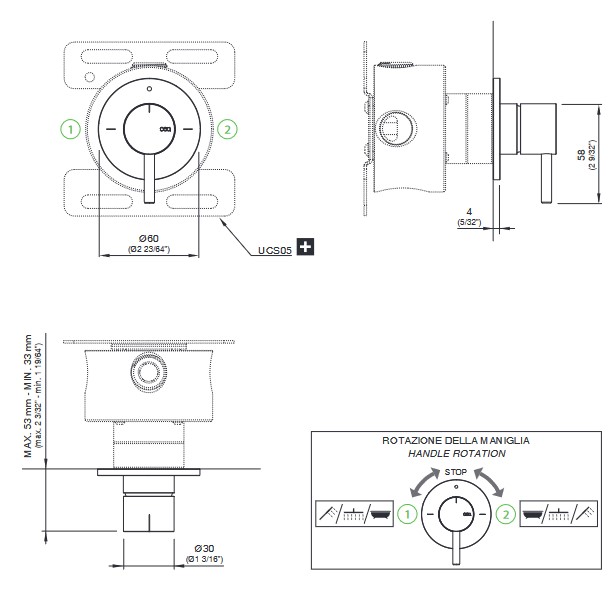 CEA Gastone Przełącznik ścienny 2-drożny element zewnętrzny Satin Stainless Steel GAS17WS