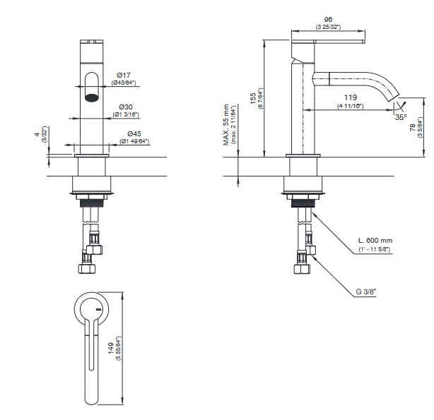 CEA Innovo Bateria umywalkowa jednootworowa z obrotową wylewką H15,5 cm Satin Stainless Steel INV01S