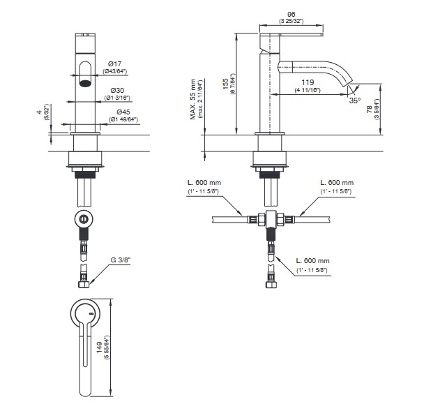 CEA Innovo Zawór na zimną lub ciepłą wodę jednootworowy H15,5 cm Satin Stainless Steel INV03S