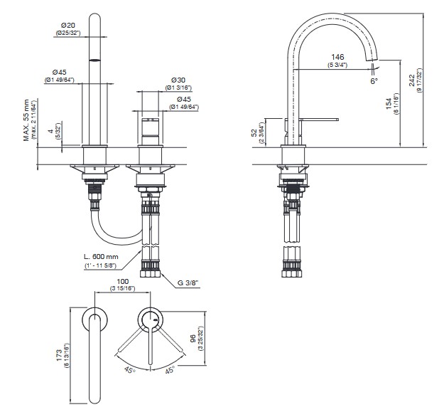 CEA Innovo Bateria umywalkowa 2-otworowa z obrotową wylewką H24,5 cm Copper Satin INV40PS