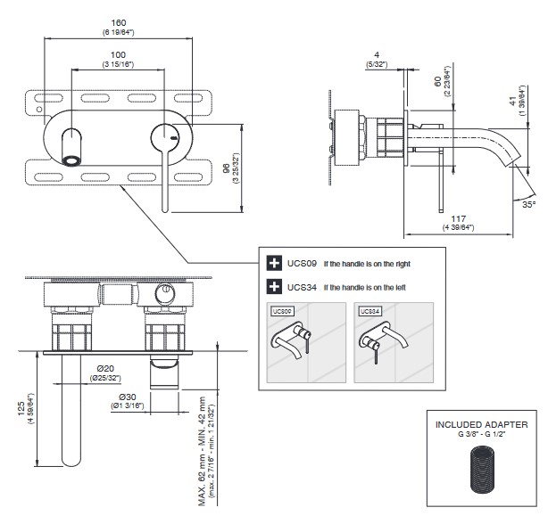 CEA Innovo Bateria umywalkowa ścienna z wylewką 12,5 cm element zewnętrzny Satin Stainless Steel INV10S