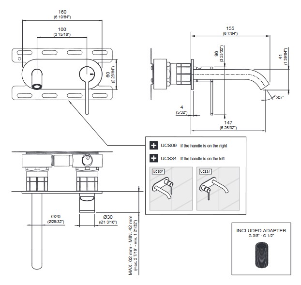 CEA Innovo Bateria umywalkowa ścienna z wylewką 15,5 cm element zewnętrzny Satin Stainless Steel INV15S