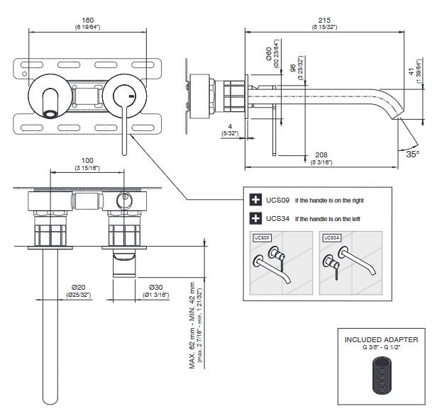 CEA Innovo Bateria umywalkowa ścienna z wylewką 21,5 cm element zewnętrzny Satin Stainless Steel INV22S