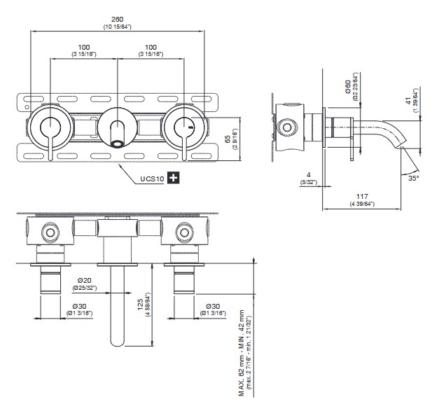 CEA Innovo Bateria umywalkowa ścienna z wylewką 12,5 cm element zewnętrzny Satin Stainless Steel INV30S