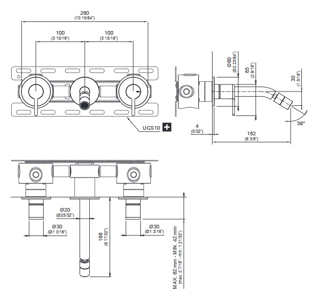 CEA Innovo Bateria umywalkowa ścienna z regulowaną wylewką 16,5 cm element zewnętrzny Satin Stainless Steel INV33S
