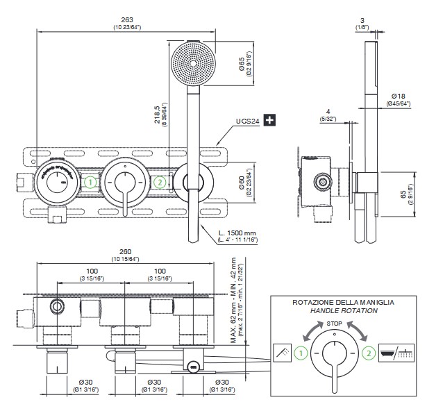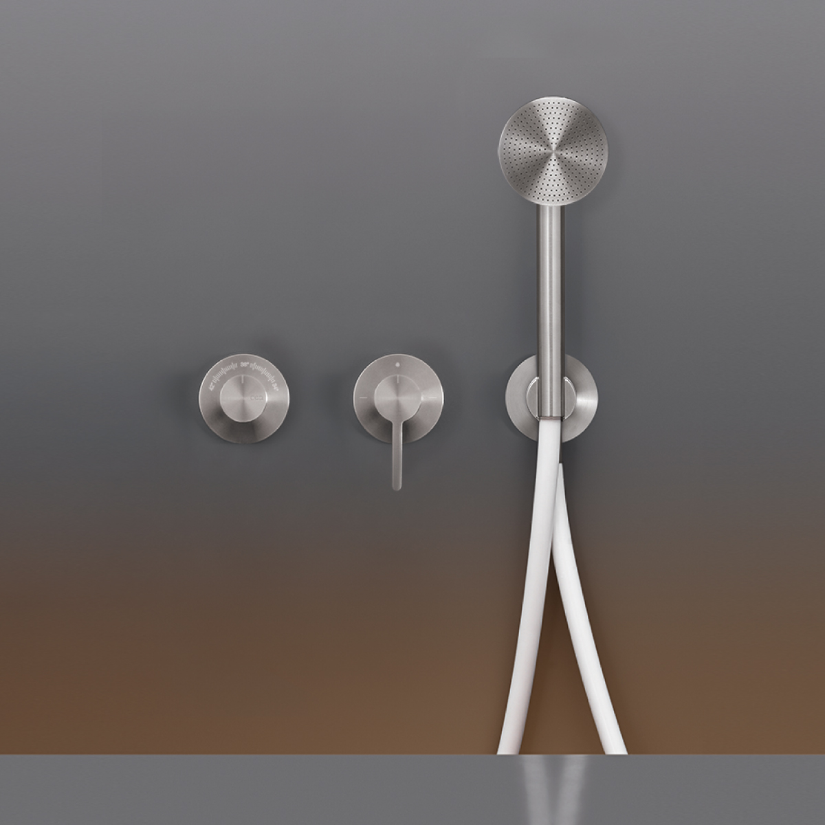 CEA Innovo Bateria wannowa/prysznicowa ścienna termostatyczna z przełącznikiem 2-drożnym, słuchawką i wężem element zewnętrzny Satin Stainless Steel INV51YWS
