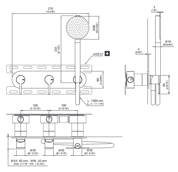 CEA Innovo Bateria wannowa/prysznicowa ścienna z słuchawką i wężem element zewnętrzny Satin Stainless Steel INV53HWS