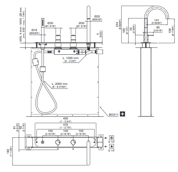 CEA Innovo Bateria wannowa 4-otworowa na brzeg wanny z wylewką i słuchawką prysznicową element zewnętrzny Satin Stainless Steel INV56S