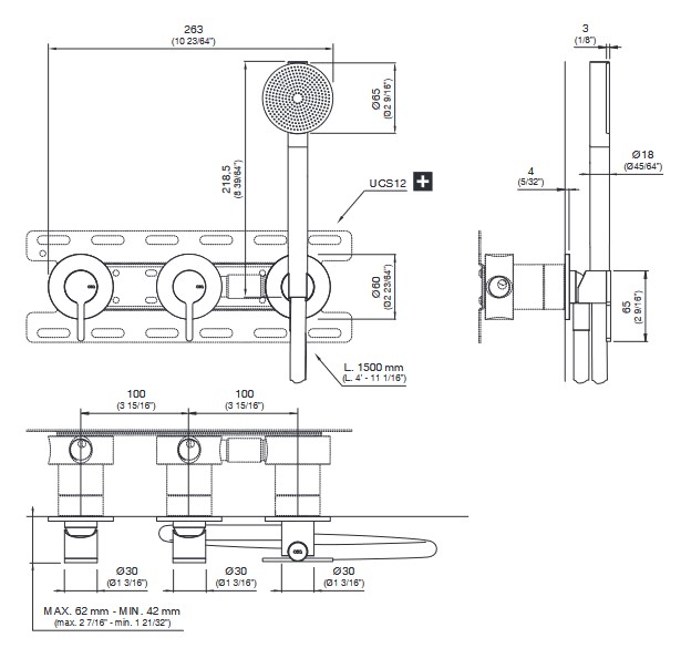 CEA Innovo Bateria wannowa/prysznicowa ścienna z słuchawką i wężem element zewnętrzny Satin Stainless Steel INV57YWS
