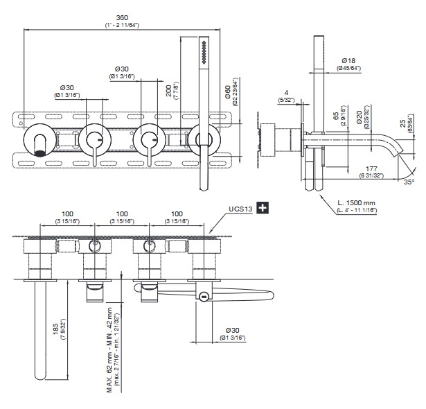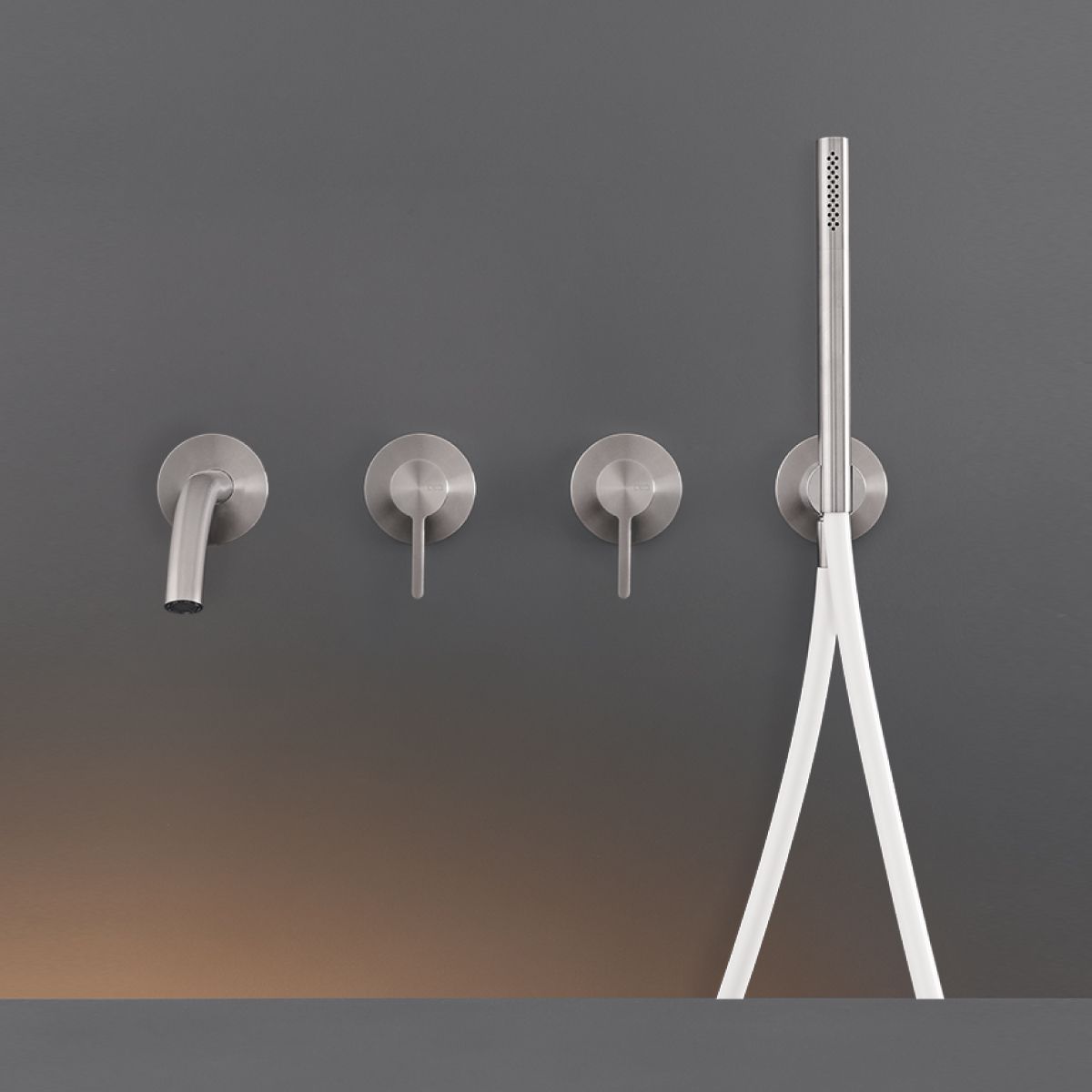 CEA Innovo Bateria wannowa ścienna z wylewką, słuchawką i wężem element zewnętrzny Satin Stainless Steel INV58WS