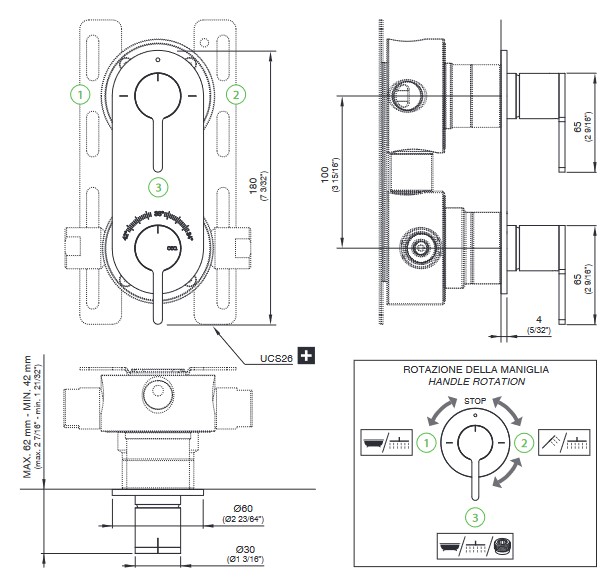 CEA Innovo Bateria prysznicowa ścienna termostatyczna z przełącznikiem 2/3-drożnym element zewnętrzny Satin Stainless Steel INV79S