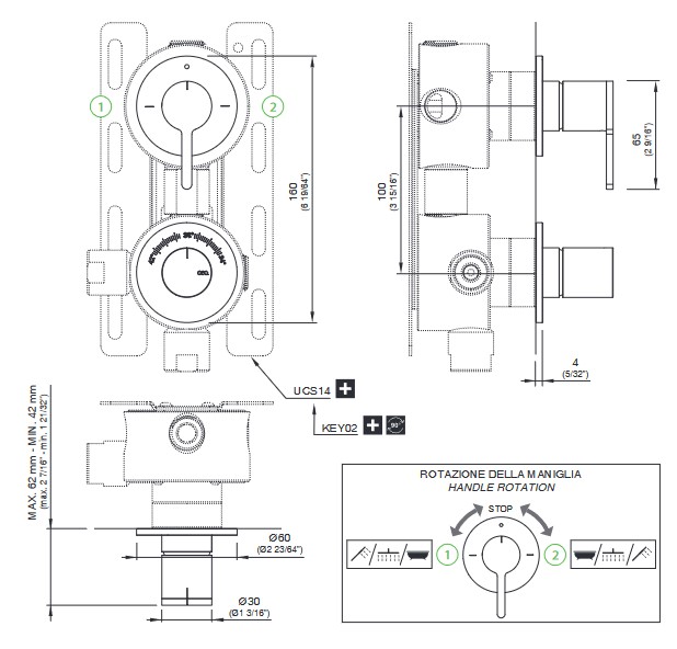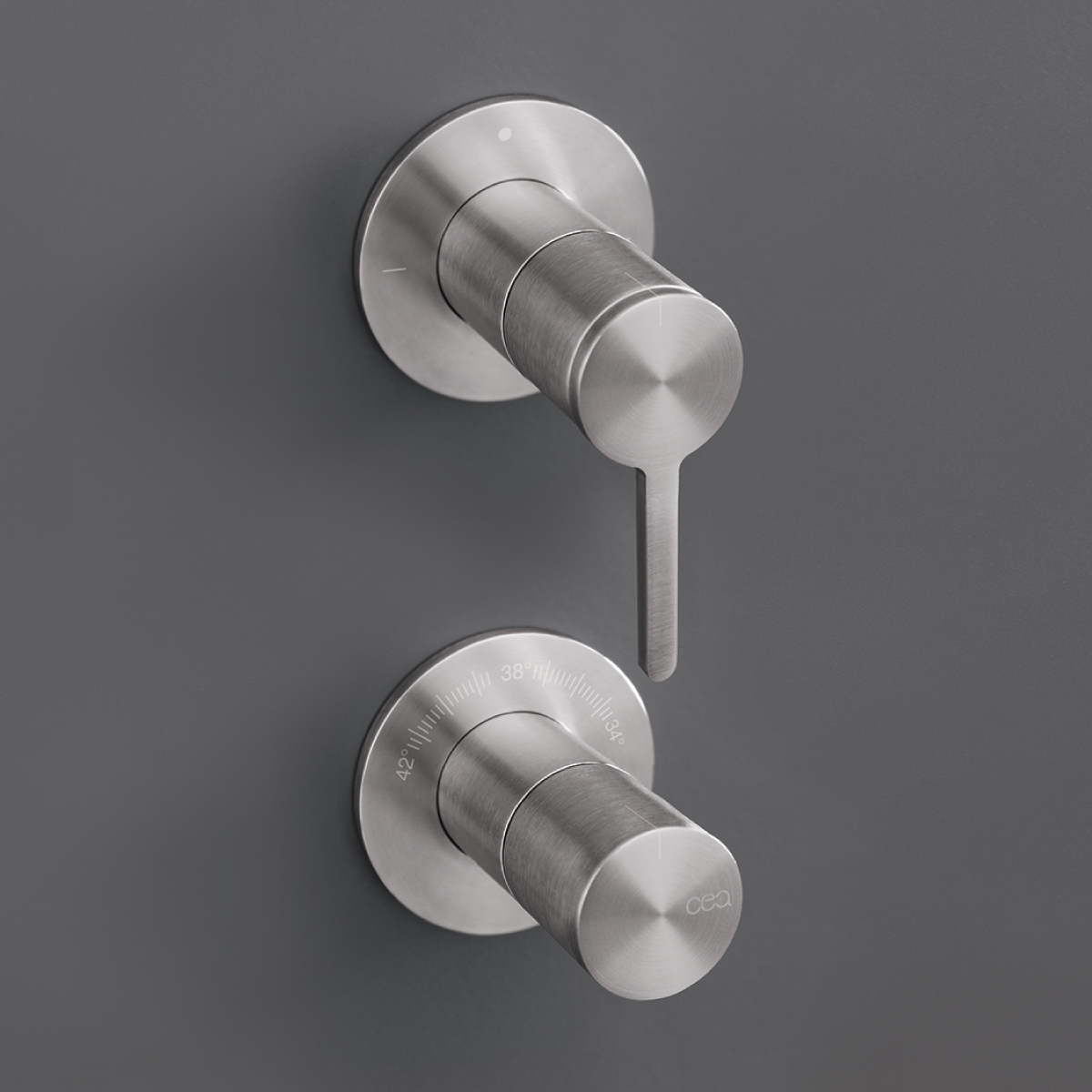 CEA Innovo Bateria prysznicowa ścienna termostatyczna z przełącznikiem 2-drożnym element zewnętrzny Satin Stainless Steel INV70S