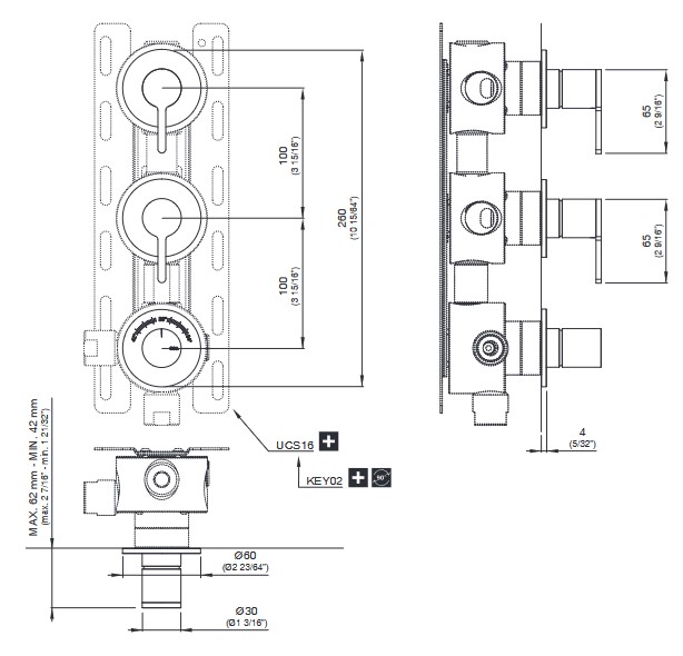 CEA Innovo Bateria prysznicowa ścienna termostatyczna z 2 zaworami odcinającymi element zewnętrzny Satin Stainless Steel INV72S