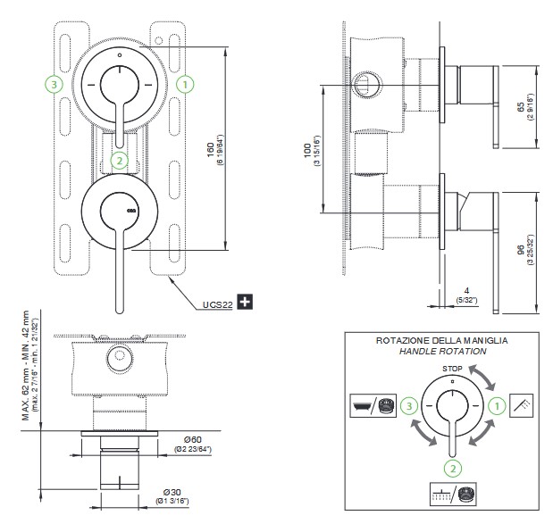 CEA Innovo Bateria prysznicowa ścienna z przełącznikiem 2/3-drożnym element zewnętrzny Satin Stainless Steel INV78S