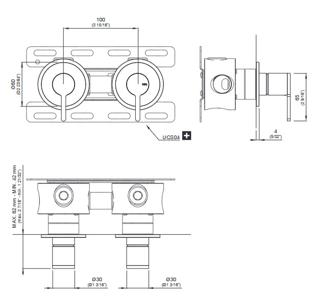 CEA Innovo Zawór odcinający (para) ścienny mieszający element zewnętrzny Satin Stainless Steel INV92S