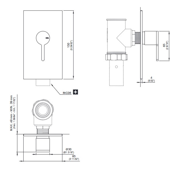 CEA Innovo Zawór odcinający ścienny ciepła woda z zaworem spłukującym element zewnętrzny Satin Stainless Steel INV150S