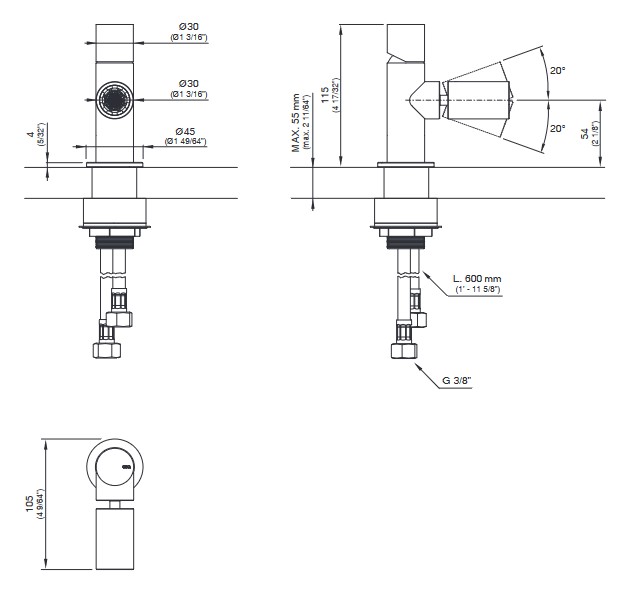 CEA Cartesio Bateria bidetowa jednootworowa z regulowaną wylewką H11,5 cm Satin Stainless Steel CAR80S