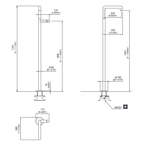 CEA Cartesio Bateria umywalkowa wolnostojąca z obrotową wylewką element zewnętrzny Satin Stainless Steel CAR04S